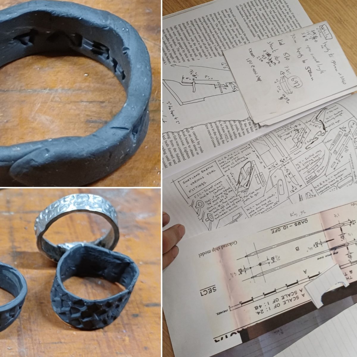 Last Thursday we did an overview of the oars. We researched some books and asked someone on the other side of the world if they had a plan. There always also a hands on exploration of historical ring making.